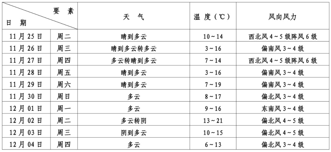 据最新气象资料分析:未来十天北方冷空气活动频繁,本区以晴到多云天气为主,气温多起伏,27日和下月3日前后各有一次冷空气过程,伴有大风和降温天气。