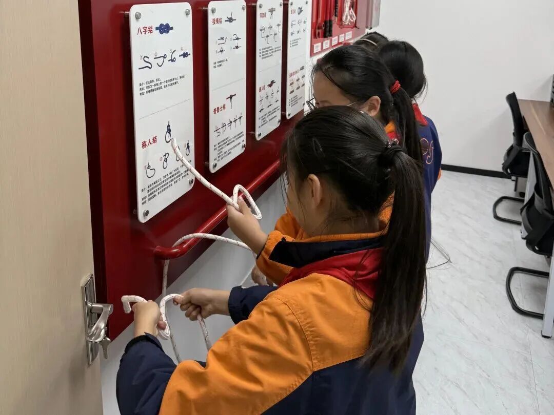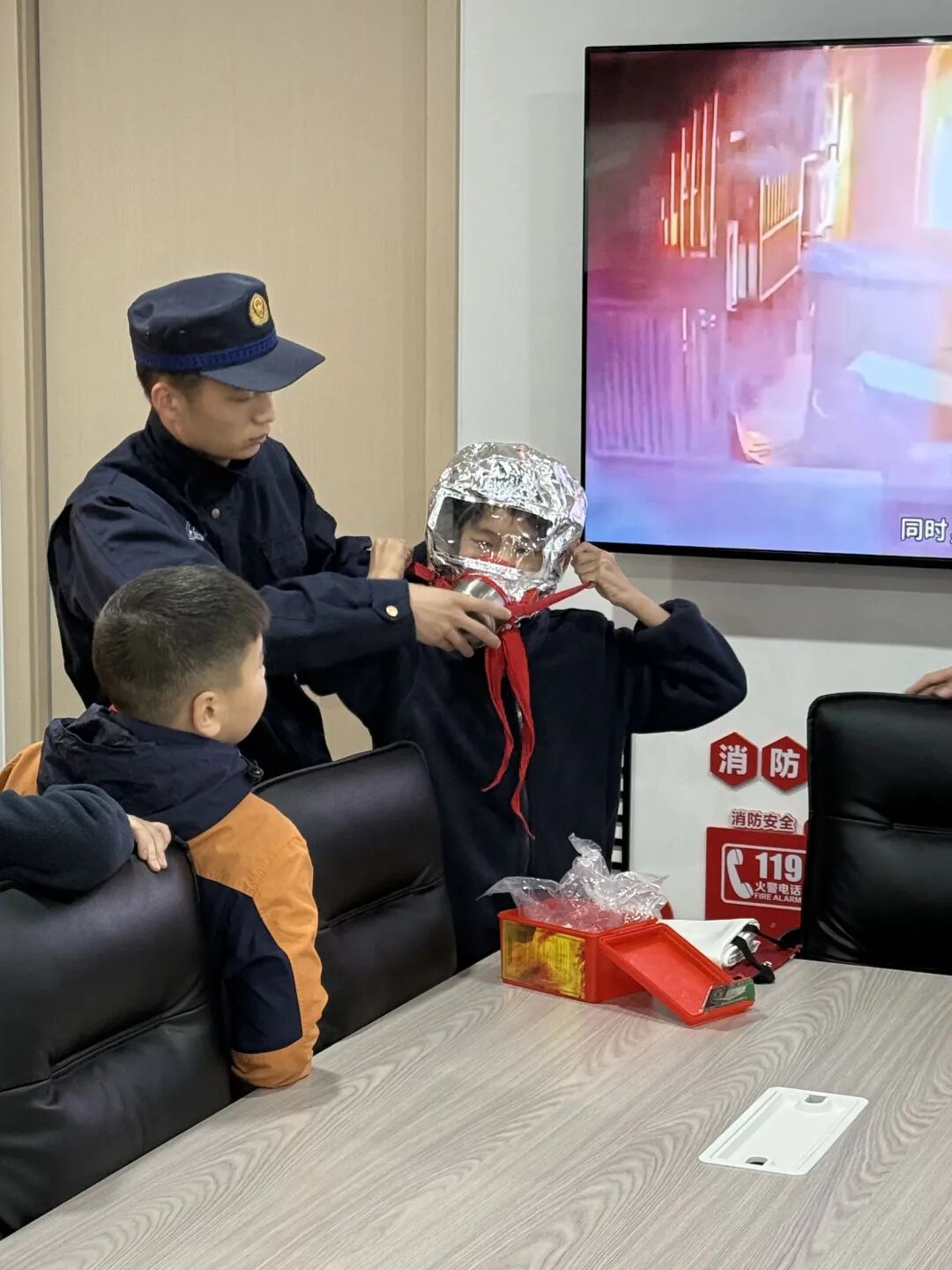 社区消防员用通俗易懂的语言,向同学们讲解了灭火器、灭火毯、过滤式消防呼吸器等常用消防器材的名称、用途、操作方法,以及逃生结的使用方法,还现场演示了灭火器“提、拔、握、压”的使用步骤,让学生们分组动手实操,在亲身实践中掌握核心技能。