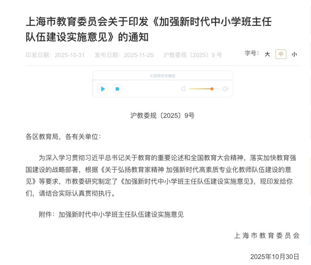 为了加强对班主任的激励和关爱,实施意见提出,区教育部门、学校要保障班主任有时间、有精力做好建班育人工作,切实减少班主任的重复性工作和非教育类事务性工作。