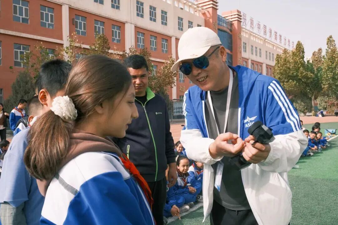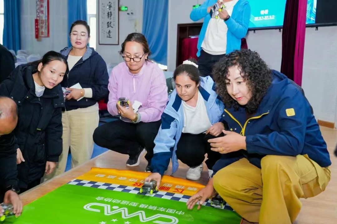 在叶城县第八中学,伴随着螺旋桨的嗡鸣,航模飞机腾空而起,划出优美弧线。孩子们从最初怯生生地触摸模型,到兴奋地欢呼鼓掌,眼中闪烁着对科技的无限好奇。操场上,上海市航空车辆模型协会秘书长、航空模型国家一级裁判李浩亲自上阵,通过演示和互动,带领学生操控车模,上演了一场酣畅淋漓的表演赛,看到孩子们兴奋和激动的笑脸,他感慨地说:“这些孩子对科技的热爱和领悟力让我惊喜。他们眼中闪烁的光芒,正是我们此行的意义。希望能通过我们的引导,让更多新疆孩子爱上科技,勇敢追梦。”