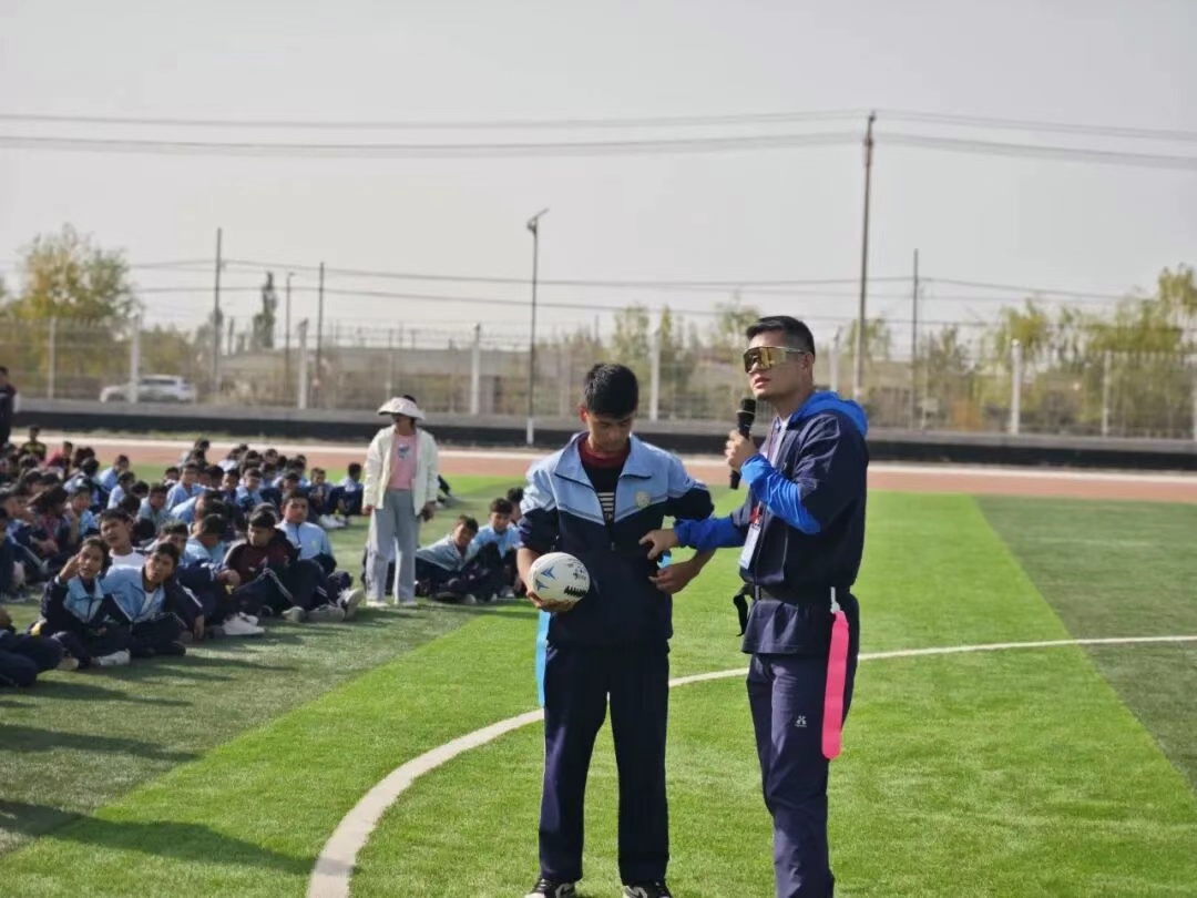 与此同时,旱地冰球、腰旗橄榄球等新兴运动也在今年走进喀什校园。上海市旱地冰球协会副会长兼秘书长陈新设计开展不同组合的比赛,带领学生们体会旱地冰球多元化组织的灵活性。叶克亚·麦麦提江和同学们在初次对抗赛中尽情奔跑、挥洒汗水,脸上绽放出灿烂的笑容。这些高水准的课程不仅瞬间激活了校园氛围,更通过面对面的互动交流,在孩子们心中深深埋下了科学与运动的种子。