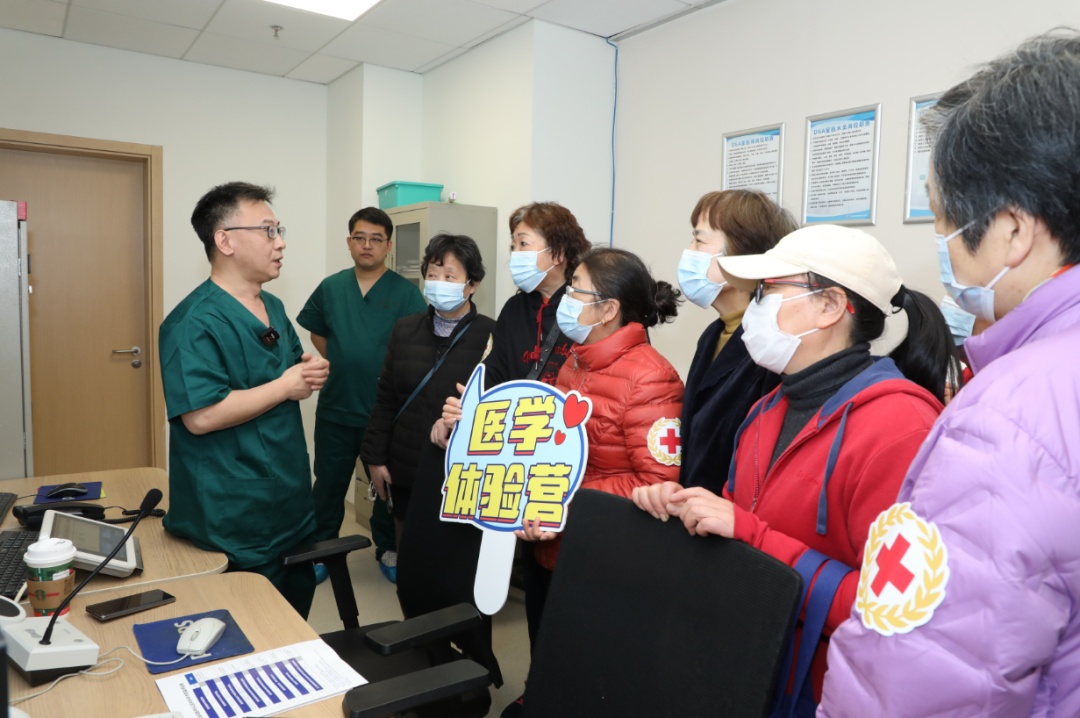 在心内科主任医师王骏的带领下,参观者们走进被称为“心脏空间站”的介入导管室。高精尖的血管造影系统、数字减影设备、血管内超声仪器等一一展现在眼前。王骏详细介绍了各类设备的功能与手术中的无菌规范,并通过实时手术影像转播,清晰展示介入手术中“毫米级”精细操作的全过程。