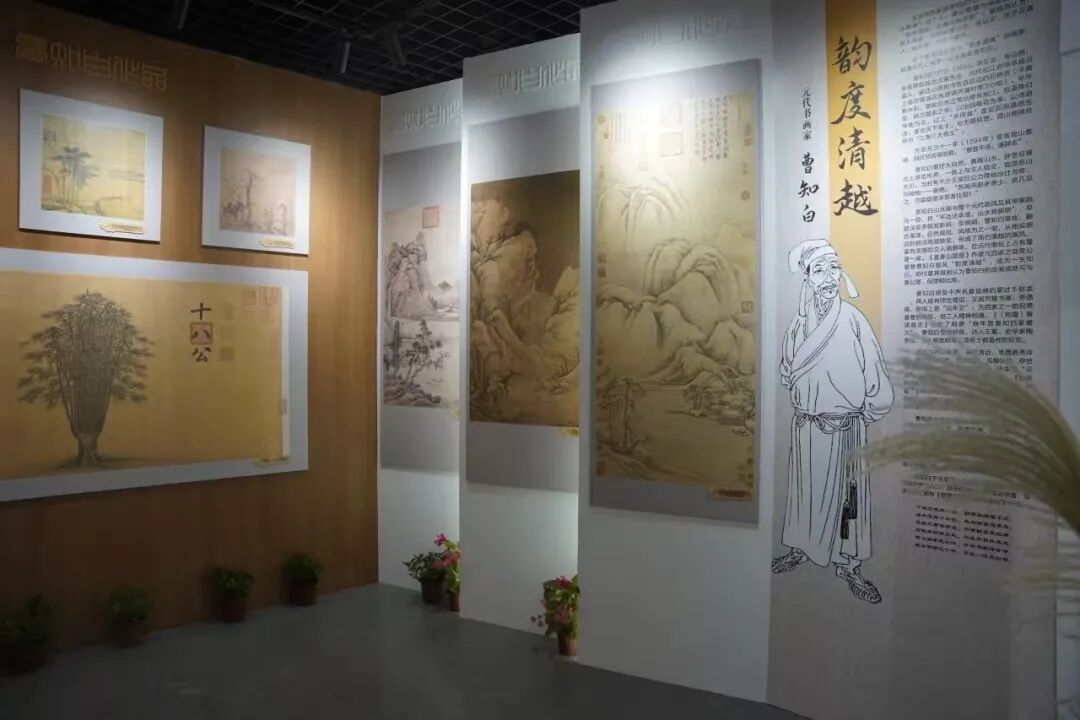 芦潼村村史馆位于村委会1层南侧,展馆以党建与村史为核心主题,融合红色与木纹色为主色调,庄重典雅中彰显乡土底蕴。馆内划分为党群服务站、陈云传记、曹知白作品展示区及村内习俗四大展区,通过图片、文字、渔耕文化老物件仿品、曹知白书画仿品等多元载体,生动呈现村域概貌、方言俚语、古迹风俗和名人轶事。