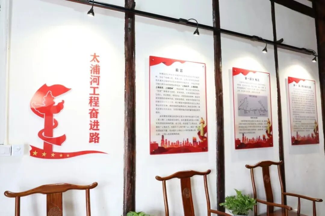 太北村村史馆的独特之处,在于它由百年丁家老宅改造而成,本身就是一段活着的历史。馆内最核心的主题是“太浦精神”,“头顶星星脚踏冰,不完成任务不收兵”的标语之下,图文并茂地再现了太浦河工程与抗洪抢险中的奋斗场景,“不怕牺牲、艰苦奋斗、奋发进取”的精神内核在此代代相传。