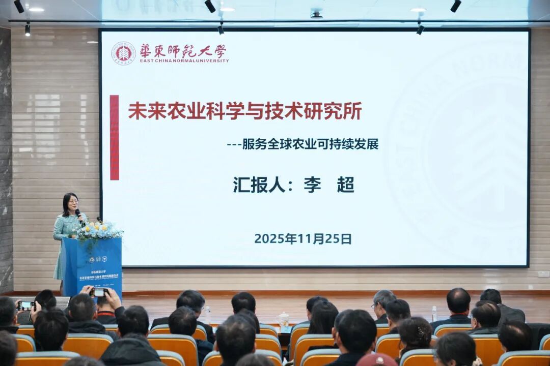 研究所所长李超教授作研究所建设情况报告。作为华东师大面向农业科技前沿的重要科研载体,未来农业科学与技术研究所依托该校生命科学学院深厚的学科积淀,以“高效、智能、生态”为核心发展理念,精准对接国家及上海农业科技创新战略需求。