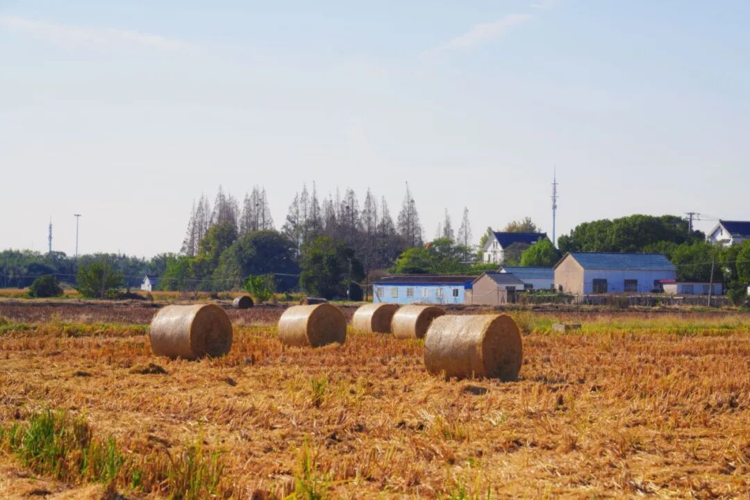 踏上山周公路,路旁是2024年新建的开放休闲林地,占地约1153亩,为市民提供了休憩、观赏、健身和康养的绿色生态空间。章堰泾的景致更是让人眼前一亮——这条获评“上海市美丽河湖”的河道,河水清冽如镜,兆昌桥等古桥横跨河面,“金章堰、银重固”的旧时风华,在此刻隐约重现。不远处,一个个胖墩墩的“瑞士卷”错落有致地分布在稻田里,将整片田野装点得宛如大自然精心打造的艺术品。
