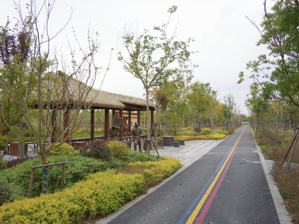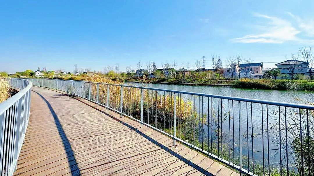 沿着徐山路前行,耳边是旺塔泾潺潺的流水声,路旁的生态防护林植被丰富,泛黄的树叶在风中沙沙作响。抬眼望去,几只白鹭悠然飞过。漫步在这条乡间小路上,脚步不自觉地轻快起来,随手按下快门,捕捉到的都是“岁月静好”的画面。
