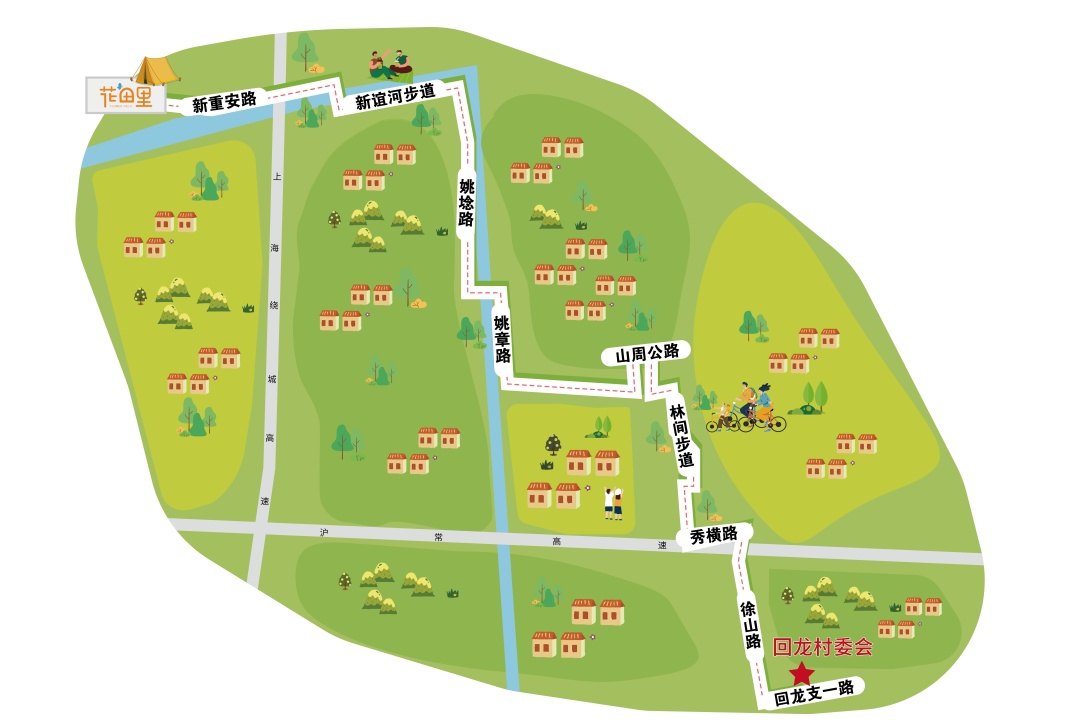 秀横路→林间步道→山周公路→姚章路→姚埝路