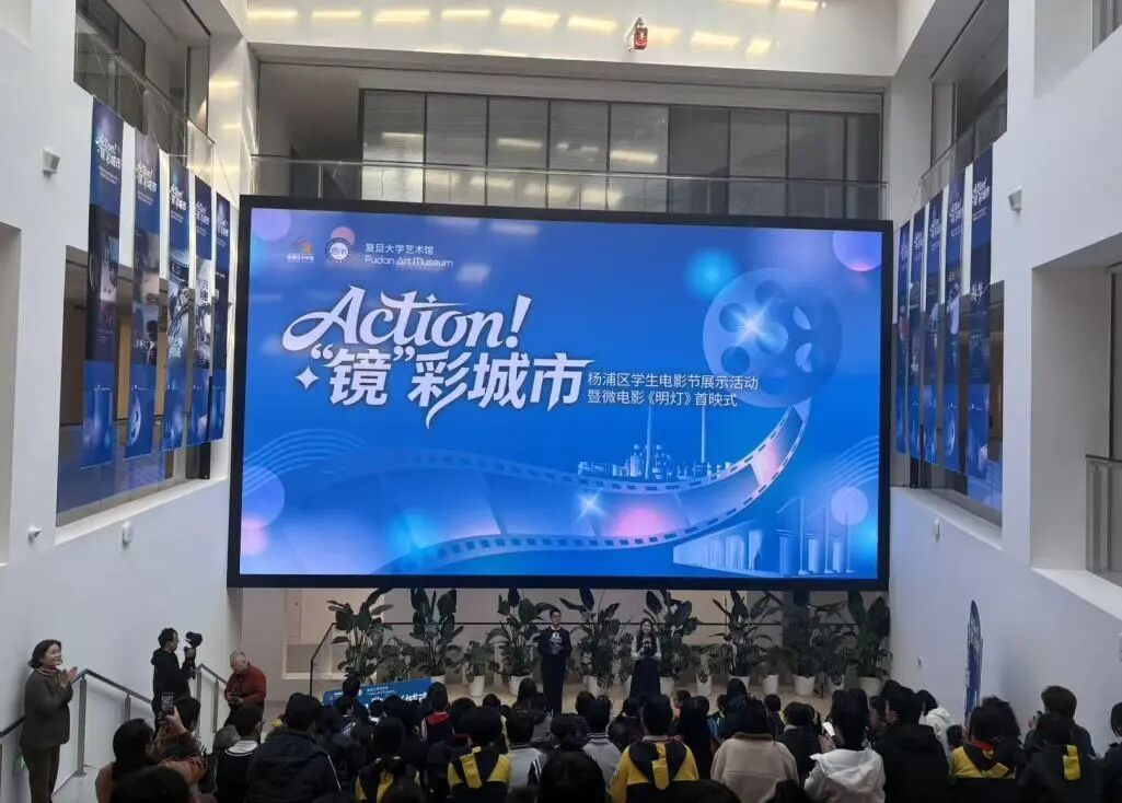 近日,Action!“镜”彩城市杨浦区学生电影节展示活动在复旦大学艺术馆举行。活动以人民城市理念为引领,将影视艺术与AI技术创新融合,成功打造了一场美育视觉盛宴。来自全区大中小学的学生、教师代表及专家学者齐聚一堂,共同见证这场光影交错、思维碰撞的美育创新实践。