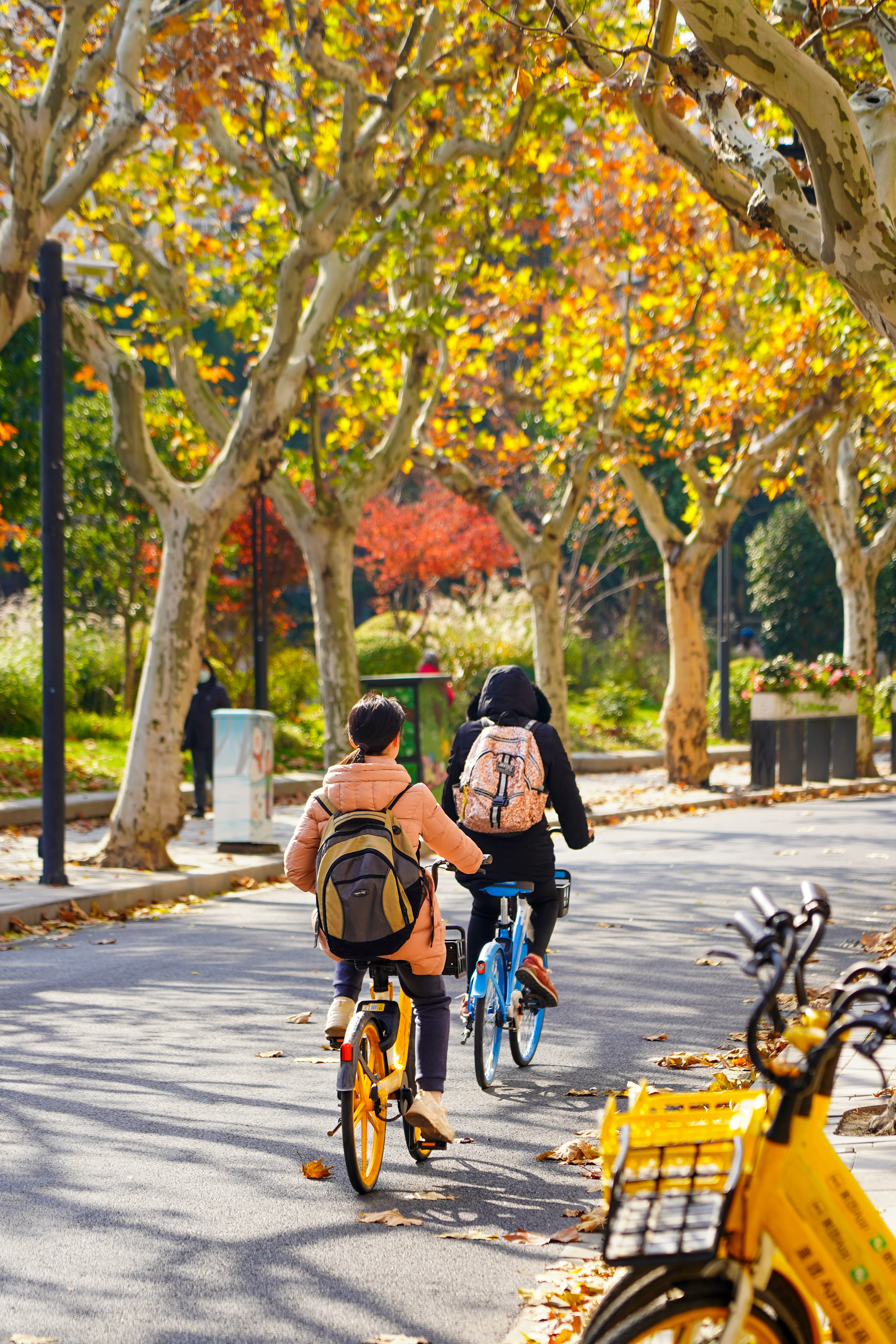 三条特意保留落叶景观的道路,其树种均为悬铃木,又称法国梧桐,享有“行道树之王”的美誉。落叶时节,金黄色的叶片在空中翩翩起舞,缓缓飘落,为大地铺上一层绚烂的金黄。漫步其间,仿佛步入了一个童话世界。一棵棵树木相互交织,枝叶繁茂,共同形成了一条林荫大道。下面,让我们一起重温往年的落叶诗意,循着这份美好,再赴即将到来的金黄之约吧。