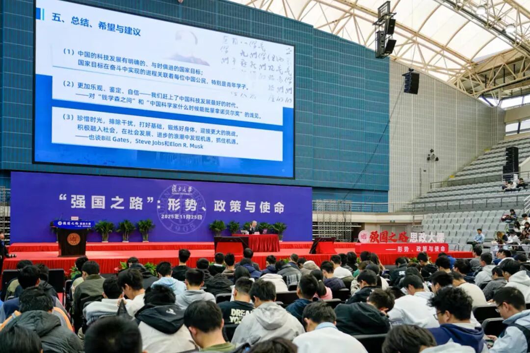 望向台下的新生,他说:“你们坐在这里,未来可能是科学家、工程师。你们的父母为你们骄傲,但更重要的是,你们要把个人梦想融入国家目标,这才是事业有成的根本。”