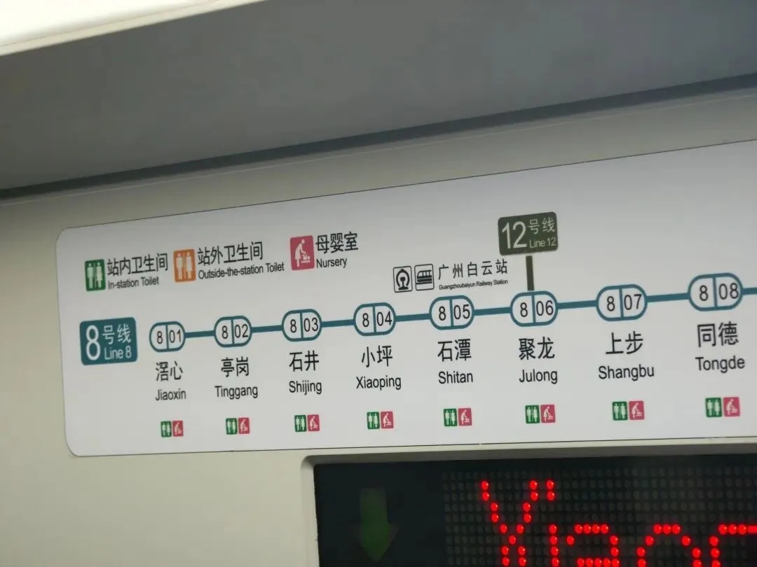 这些指示标识,有企业标准,同时也制定了上海市的地标,叫《城市轨道交通导向标识系统设计规范》,目前也正在修订当中。有些厕所如果在站厅里面费区外面,墙上面张贴了导向信息带,墙面上会指示车站厕所的位置。到站台的厕所,费区里面,站台有悬挂导向标识,站台上同时还有站名牌,上面也有公共卫生间的标志。
