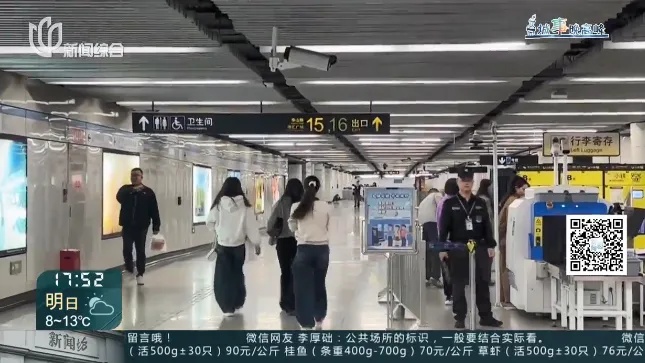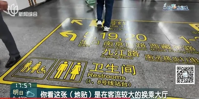 熊熊人民广场站站长:已经有了,其实是组合式的一个信息。换乘大厅上的几个门洞每个都有无障碍的厕所,包括地贴也是非常清晰的。这里面积实在太大了,大站要很多信息兼顾,我们有18个出入口包括“无障碍电梯”“寄存柜的”信息。