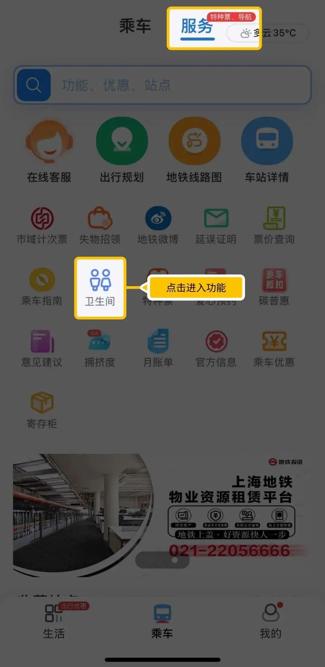 乘客进入费区后,若想就近使用费区外的厕所,只要和站务员说明缘由,便可免费出站。