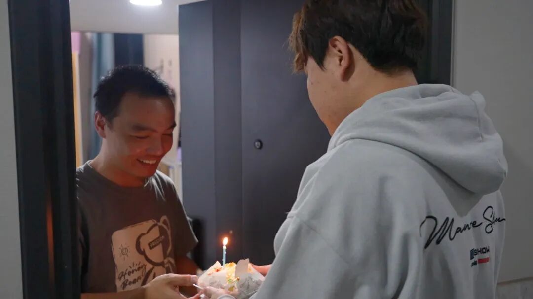 “师傅辛苦了,祝您生日快乐!”听到敲门声后,还未睡觉的李超凡开了门,迎接他的是一个生日的惊喜。等了一天的驿站管理员给他送来了生日蛋糕,过段时间还会安排免费体检,入冬后的驿站让李超凡感觉特别温暖。