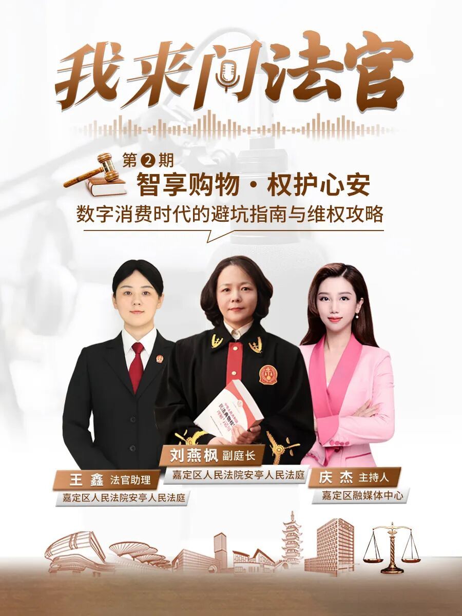 上海市嘉定区人民法院与嘉定区融媒体中心合作推出的系列直播访谈节目《我来问法官》第二期来啦!本期主题聚焦“智享购物·权护心安——数字消费时代的避坑指南与维权攻略”,两位专业嘉宾将用真实案例拆解消费纠纷,教你留证技巧、维权路径,把法律干货变成购物底气!
