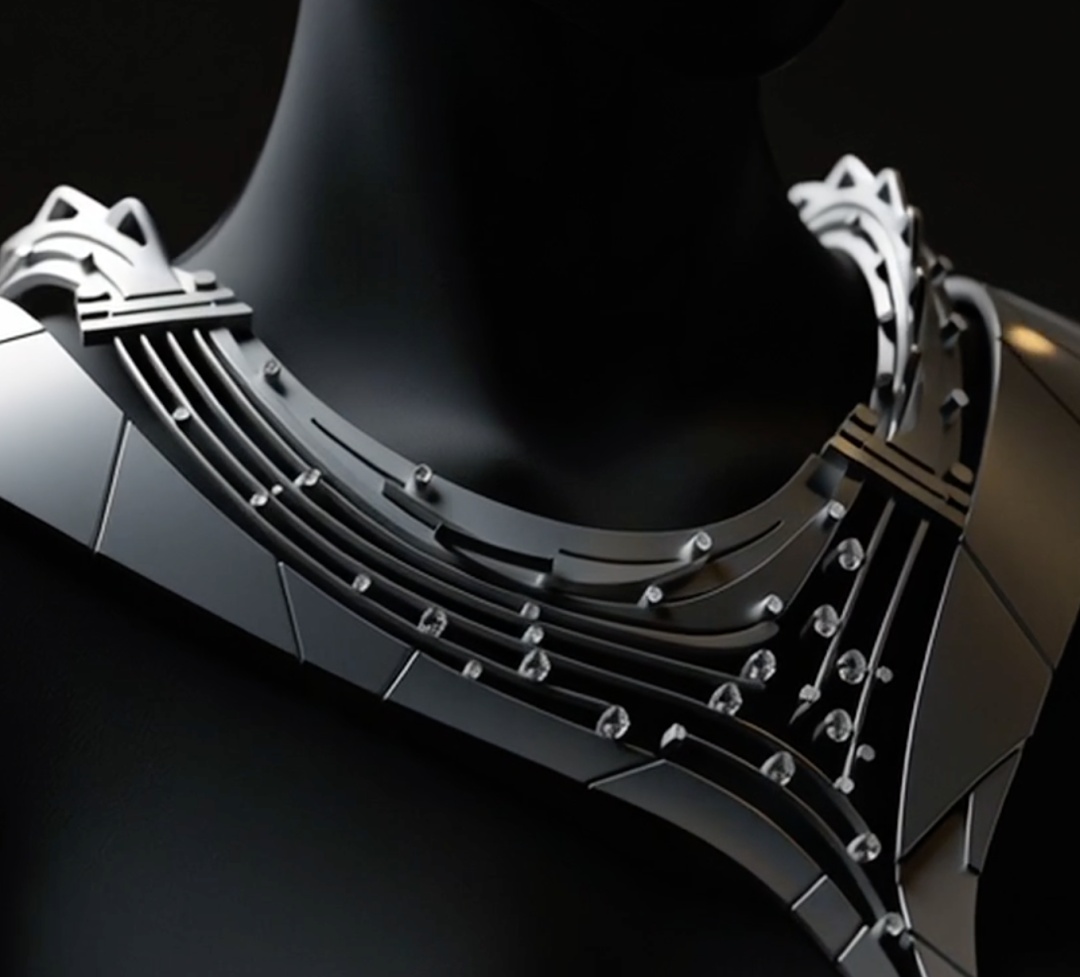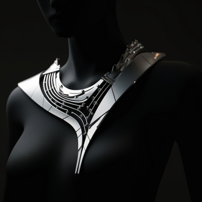 在探索的道路上,吴雨芳的视线早已超越了传统的边界,投向了更遥远的未来。《無垠》智能概念项链的诞生,便是她交出的一份最具前瞻性的答卷。在这件“人机共生”的可穿戴珠宝中,她展开了一场跨界实验:与AI协同创作,将微型智能传感模块如星辰般精巧地镶嵌于项链结构之中,使传承千年的珠宝具备了感知与交互的能力。它不仅是一件饰品,更能实时监测心率、提供活动提醒,以细微的震动传递信息,成为关怀佩戴者身心状态的“智能伴侣”。