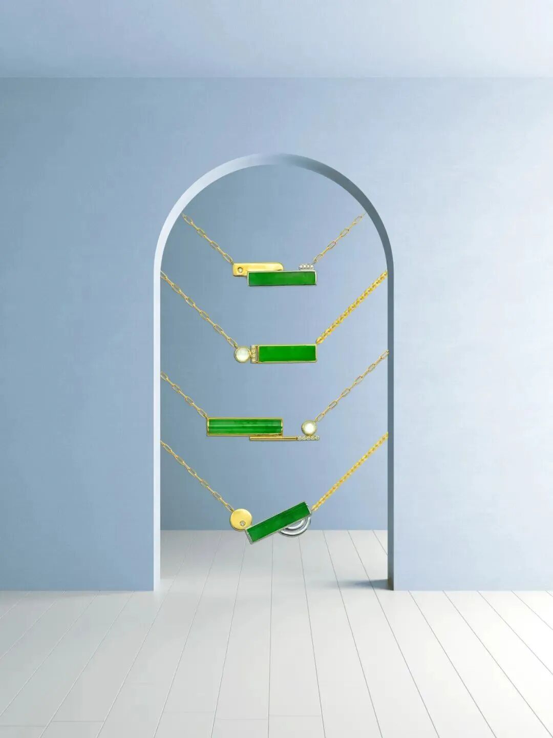 而在自主产品研发中,她以前瞻的眼光探索市场趋势。“小清新”翡翠系列就是其中的代表。她大胆摒弃传统翡翠繁复的镶嵌方式,通过不对称设计、几何解构与留白意境等现代设计手法,用当代审美重塑东方翡翠的轻盈表达,用极简的线条展现翡翠本真的灵韵之美,让古老的玉石焕发出青春的活力,为每一块翡翠找到最契合当代生活美学的佩戴方式,吸引了许多年轻人的目光。