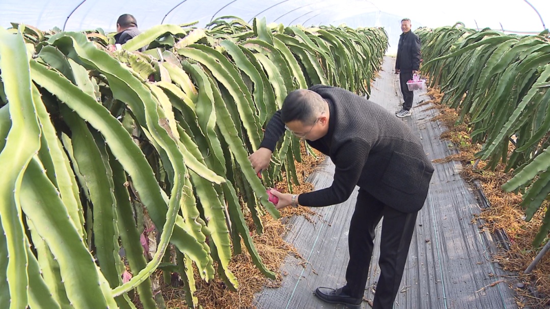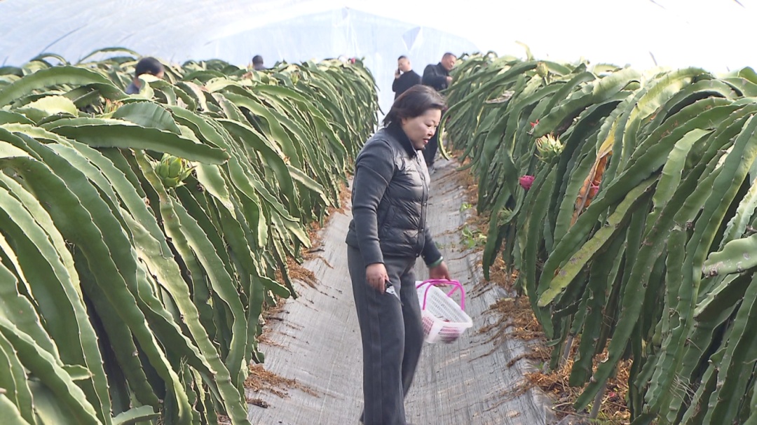 为何热带水果能在沪郊冬季持续生长并保持优异品质?基地负责人潘公展道出了其中的关键:“我们采用了双层大棚保温技术,为火龙果营造了独立的温暖湿润的微气候。”他介绍,这样不仅成功抵御了寒冷,还使得果实的糖分得到充分积累。“在冬季,大的果子相对来说比小的果子口感更甜,并且我们坚持完全成熟后再采摘,确保了最佳口感。”目前,基地的火龙果采摘期可延长至来年2月,实现了本地火龙果的冬季错峰上市。