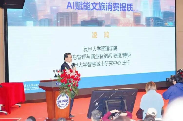 在主旨演讲环节,国家文化和旅游部科技教育司原司长孙若风从四大发明切入,阐述文化科技融合特征与传统哲学启示;上海财经大学商学院教授何建民聚焦文旅商体展融合消费新场景,分享了IP植入、主客共享、业态延伸等开发方法与案例经验;中国电子商会数字文旅专委会理事长信宏业厘清赋能与使能、数字化与智能化的核心差异,深度阐释数字技术如何成为文旅创新的核心驱动力;复旦大学管理学院教授凌鸿结合AI技术新动向与政策,阐释智能代理、虚实融合等技术对文旅体验的革新。上外贤达数字文旅学院院长潘皓波则聚焦智能经济发展浪潮与文旅消费升级趋势,深度展望了技术赋能下文旅消费场景、服务模式与体验维度的创新变革方向。