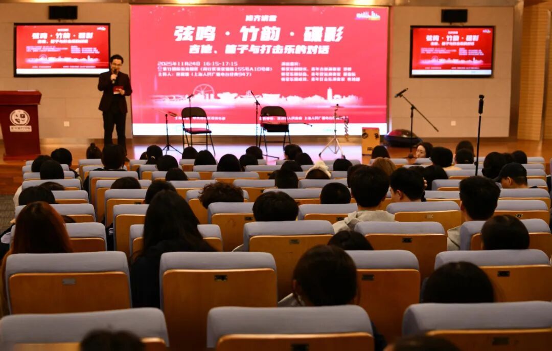 11月24日,“修齐讲堂”系列音乐沙龙之“弦鸣·竹韵·碟影——吉他、笛子与手碟的对话”在闵行吴泾紫竹国际教育园区举办。200余名师生和通过网络报名的市民代表齐聚一堂,在吉他温暖的弦鸣、笛子悠扬的竹韵与手碟空灵的振动声中感受了一场沉浸式音乐疗愈沙龙。