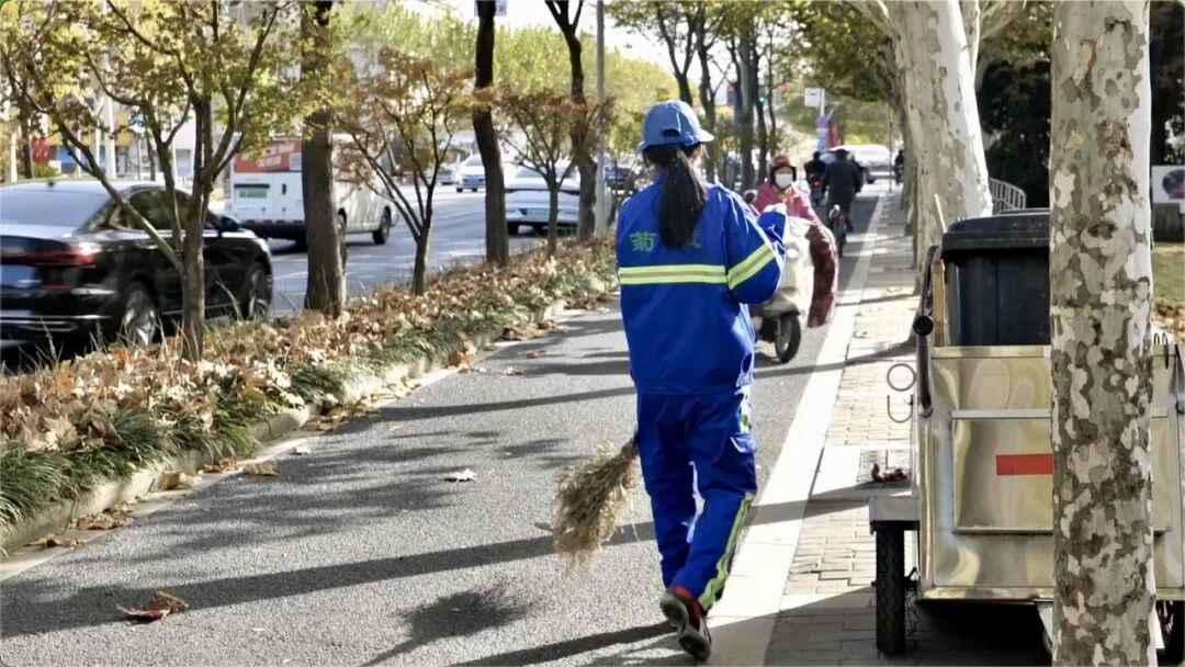 “我们使用大机扫和小机扫结合,不仅加大了机械化清扫和清运的力度,也提高了清扫效率。”嘉定区城发环境三分公司疁城保洁小组长王丽红说道,“以往我们一天只需清扫两次,但现在落叶量增大,至少要完成4到5次清扫,确保路面始终保持干净整洁。”