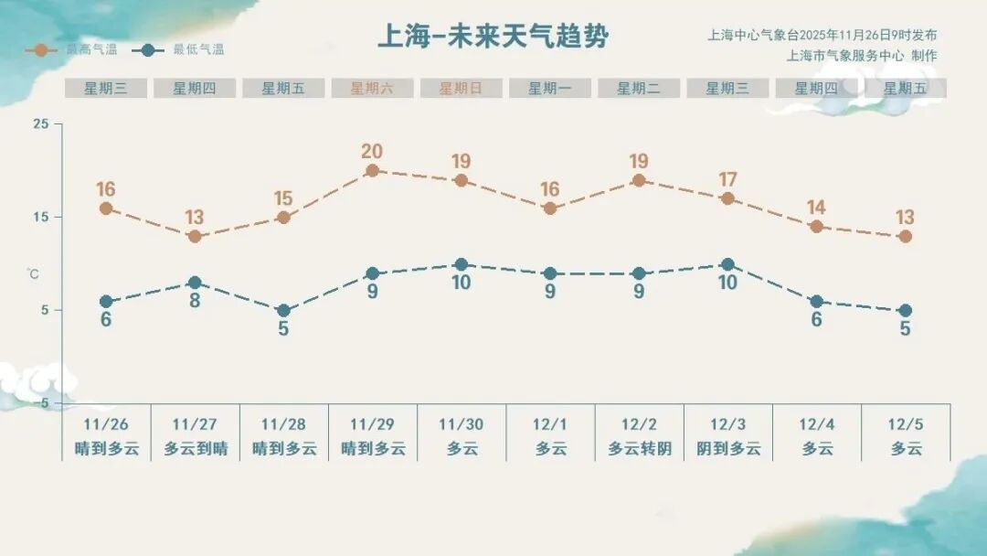 上海中心气象台预计,明日有新一股冷空气造访,本市风力明显增大,气温再度下降,全天气温在8~13℃。周五早晨,本市中心城区最低气温又会跌至5℃附近,部分郊区或将重回“冰点”。本周的冷空气都属于“来去匆匆”,周五白天重启回暖的步伐。双休日和下周初本市以晴或多云为主,相对温暖,下周三前后又会有新一股冷空气影响。尽管冷空气频繁到来,但由于缺乏水汽配合,未来十天申城难觅雨水。
