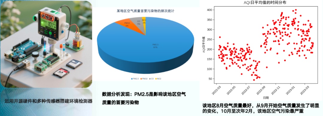 上海市格致中学学生在探究性学习中,借助大模型对野外采集到的空气质量数据进行统计和相关性分析;运用“个人知识库”,上传相关学术文献,使用AI工具开展文献分析。
