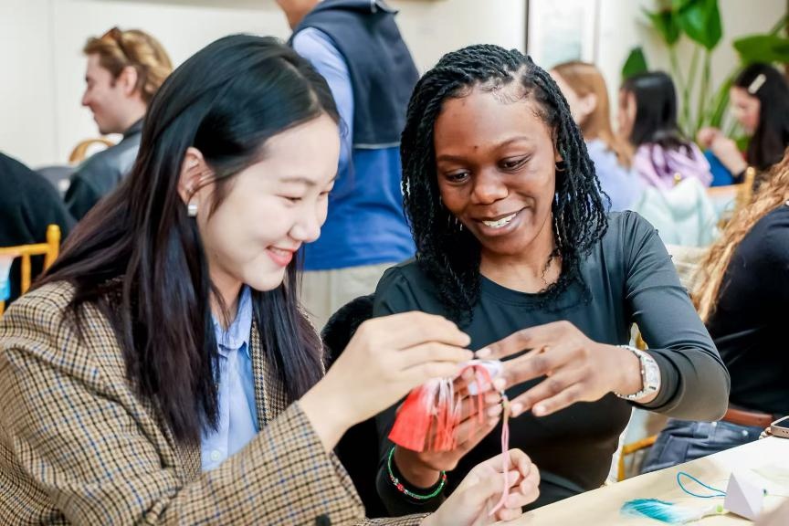 现场同步进行了木棉花现代编制和香囊制作的非遗活动体验,在非遗老师们的指导下,中外学子亲身体验非遗手作过程,感受文化传承背后的深意。