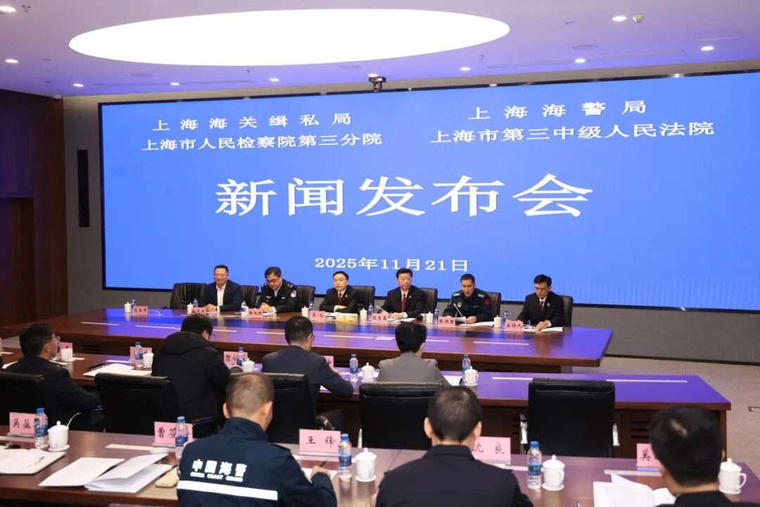 发布会上,上海市人民检察院第三分院发布《上海打击走私犯罪白皮书(2015-2024)》,上海海关缉私局、上海海警局、上海市第三中级人民法院分别介绍各单位打击走私犯罪工作情况。