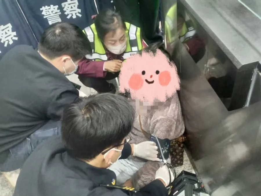 在等待救护人员到达的过程中,李玉蓉始终守护在该乘客身边,密切关注其生命体征及意识状态,不断给予安抚,并维持现场秩序,确保救援通道畅通。不久后,120急救车抵达现场,经医护人员紧急检查,初步判断该乘客为胃出血症状,需立即送往医院接受进一步救治。李玉蓉随即与辅警共同协助急救人员,将乘客稳妥转移至担架,并护送至站外安全登车。
