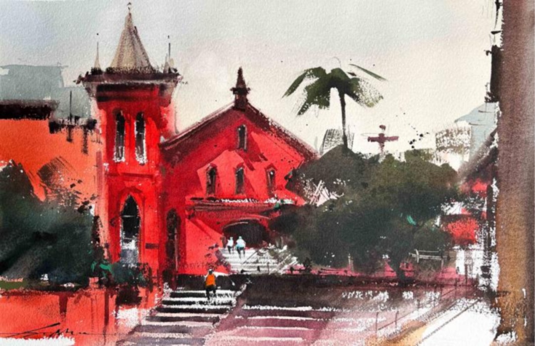 画这两处,是因为它们都在水边。台北的淡水,在淡水河口。上海的圆明园路,紧挨着黄浦江,离外滩仅一步之遥。为何他们都在水边?这事想来也简单,都是“开埠”的产物。大约在19世纪末到20世纪初,随着港口通商,西方文化开始涌入,传教士们开始进入这两座城市。他们落脚的首选之地,必然是交通最便利的临水之滨。