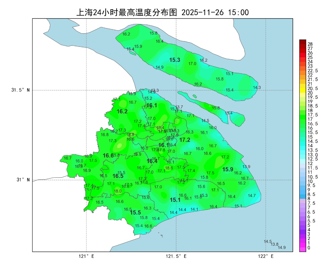 辐射降温让今晨的气温再遇挑战,近半数郊区最低气温跌破冰点,中心城区也只有6.4℃。白天阳光稳定在线,风力减弱,暖意慢慢追赶上来,全市最高气温回升至15—17℃。处在大晴空区里,“干燥感”也依然明显。
