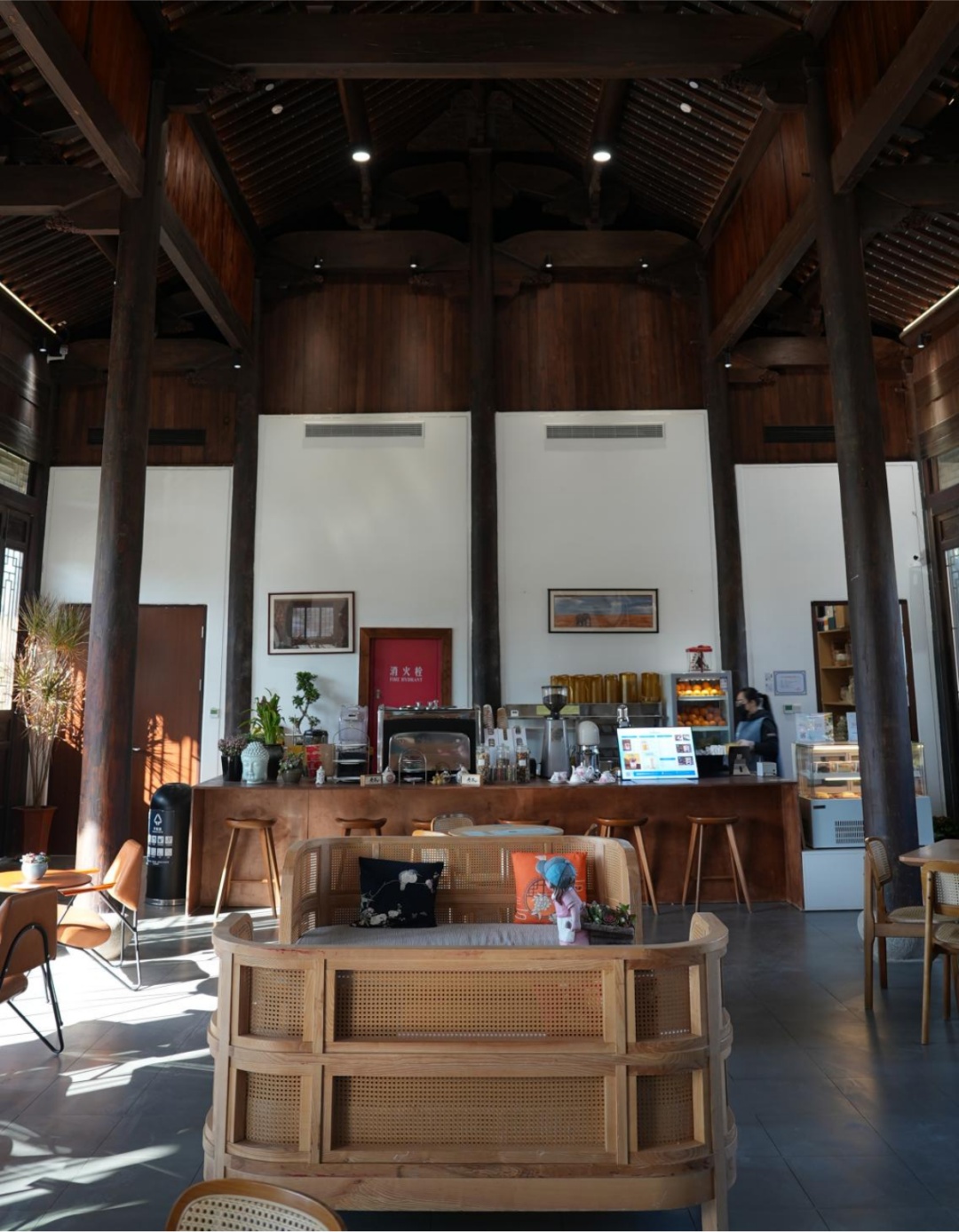 沿着湖心亭前的小路继续向前,可以看到一间门窗打开的水吧。这里根据游玩市民的喜好,增添了咖啡、烘焙等,让古色古香的茶室拥有现代元素,也吸引了更多年轻人走进茶室。