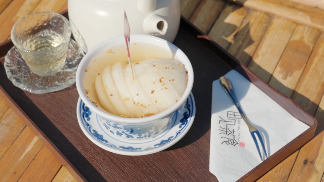 桂花暖梨茶:慢炖的梨汤浸润桂花清香,暖意顺着喉咙蔓延至指尖,用物理温度驱散秋凉。