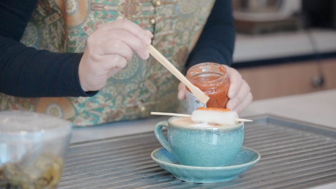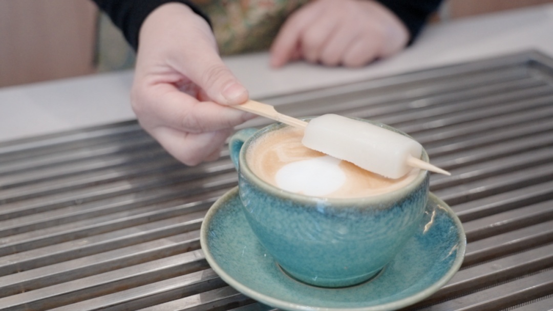 年糕拿铁:一口年糕一口咖啡,年糕的米香、咖啡的醇厚与奶泡的丝滑交织,达成奇妙平衡,甜而不腻,暖而不燥。