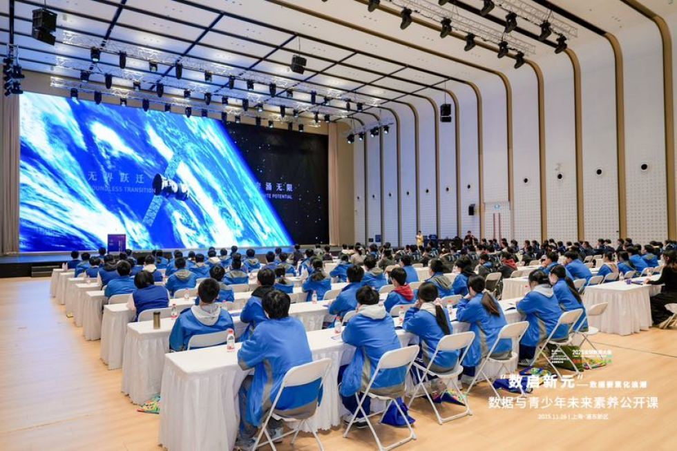 11月26日,由上海市浦东新区数据局与中国共产主义青年团上海市浦东新区委员会联合主办的“数据与青少年未来素养公开课”在张江科学城数智天地未来学院举行。本次活动作为2025“数据要素×”大赛颁奖仪式暨全球数商大会的重要组成部分,以“数启新元——数据要素化浪潮”为主题,旨在面向青少年普及数据知识、激发数据思维、培育面向未来的数据素养。