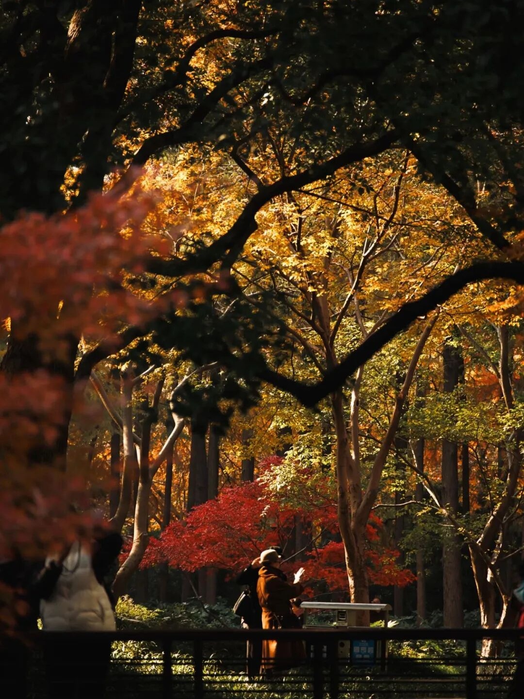 延中广场公园里的红枫银杏早已在上海小公园届火出圈了,在这里偶遇落羽杉,是意外惊喜。穿过长桥碧水,沿着绿地一路漫步到池边,便能到达这个绝佳的杉树赏景位。