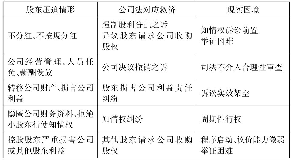 公司资本多数决原则为股东压制提供了客观便利,而有限责任公司的封闭性和人合性、退出机制的匮乏,使得股东压制问题尤为突出,成为引发公司解散争议的重要因素之一。问题所述公司解散诉讼便是根源于A公司多数股东达成利益共同体对少数股东陈某形成压制。股东压制没有一个清晰的概念,集中体现为多数股东对少数股东参与公司经营管理权的限制和剥夺,使后者不能正常参与公司的经营管理或者无法获得相应的投资回报,具体体现于公司治理、任职安排、利润分配等多个层面。我国公司法并未将股东利益受损害案件纳入公司解散诉讼,立法者认为,现有的公司法体系已经为受排挤和压制的股东提供了无须解散公司的多种司法救济途径。诚然,缓和性救济方式更为契合维护公司持续发展的理念,被压制股东如可以通过公司法提供的针对性路径获得特定权益损害的有效救济,自不应倡导以解散公司这一略显极端的方式进行维权。但是,此类公司解散之外的救济方式,在实践中是否能够切实有效发挥立法者所期待的作用,不无疑问。如强制股利分配之诉,依照《公司法司法解释四》第15条规定,股东请求公司分配利润,需提交载明具体分配方案的股东会或股东大会决议,或者证明存在滥用股东权利导致公司不分配利润,给其他股东造成损失的情形。实践中,被压迫的小股东通常无法获知公司财务资料,故需先提起知情权诉讼,证实有可分配之利润,方符合提起股利分配之诉的前提条件,且即便进入实体审查,仍可能因交付公司自治解决、未证实滥用股东权利等情形被驳回诉请。同理,在异议股东请求公司收购股权的情形中,异议股东也面临证实公司连续五年符合分红条件而不分红的举证困境。新修订《公司法》新增的受控股股东侵害的其他股东请求公司收购股权的情形中,小股东对于公司收购程序的启动、收购合理价格的确定显然处于弱势地位,即便进入诉讼,对控股股东身份、控股股东滥用权利及造成严重损害事实的举证也显见不易。又如,在公司决议撤销之诉中,依照最高人民法院第10号指导性案例意见,公司决议案件应当审查召集、表决程序是否违反法律、行政法规或者公司章程,以及决议内容是否违反公司章程;在未违反前述规定的情形下,解聘总经理职务的决议所依据的事实是否属实、理由是否成立,不属于司法审查范围。由此,多数股东能够以有效多数决作出任何对抗少数股东的决议,且在形式上符合《公司法》的要求。再如,在股东损害公司利益责任纠纷中,即便少数股东通过代位诉讼使得被多数股东侵占的财产返还至公司,因该被返还的财产通常仍处于多数股东控制之下,存在被再次转移的风险,救济实效可能会被架空。