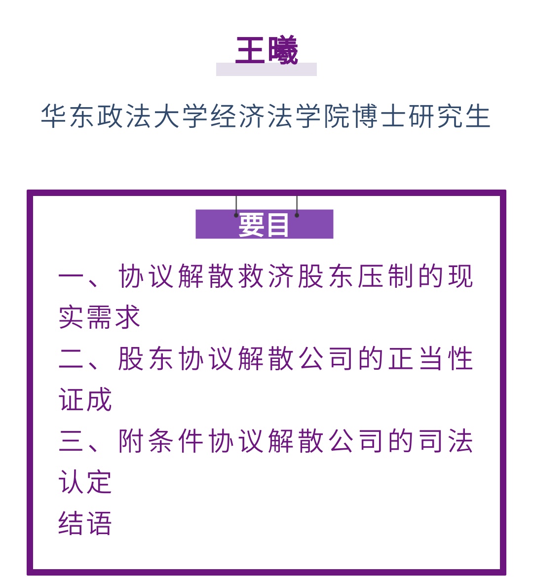 我国公司法提供的股东压制救济途径分散于公司利润分配、股权收购、公司决议及经营管理等多个领域,对于长期的复合性股东压制,实效甚微。因新《公司法》未将股东压制列入请求司法解散之诉的法定情形予以终局救济,引入股东事先协议作为股东压制的救济,符合公司法股东自治的理念,也可自洽于现行公司法体系。全体股东书面一致同意附条件解散公司可纳入《公司法》第59条第3款规定的股东决定范畴,属于《公司法》第229条第2项规定的决议解散;股东就约定的解散条件是否成就产生争议的,可诉请法院确认。附条件协议解散公司案件的审查,一方面,应与司法解散公司在审查理念上作区分,另一方面,应从严把握约定解散条件是否已实质成就,以均衡保护小股东权益与保障公司存续权利。股权结构集中度高是封闭公司的普遍现象。我国小微有限责任公司数量众多,实践中股东滥用权利损害其他股东利益的现象较为突出,股东压制即长期的复合型股东权益侵害行为现象亦屡见不鲜。新修订的《公司法》未将股东压制列入请求司法解散之诉的法定情形予以终局救济,因股东压制而产生的争议纠纷通常无法以提起司法解散之诉的手段切断矛盾之源。在法律规范不能直接满足公司治理实践提出的需求时,公司治理实践以迂回的方式探索寻求新的纠纷解决路径。比如以下案例:A公司股东为陈某(40%)、李某(40%)、胡某(20%)。2014年经营期限届满后,各方对延长经营期限未达成一致。2015年,陈某申请强制清算,因未提供清算材料,法院未予受理。2016年12月,各股东就公司展期签署《承诺书》,约定:“……日后收益按股权份额当月分割……公司主营业务厂房租赁由李某负责……股东对公司财务状况有知情权……三方股东对上述承诺内容均已知悉且认可,并表示愿意照此执行。若今后任何一方违反本承诺书,三方可协商解决,协商不成的,则三方均同意解散该公司。”同日,A公司修改章程,营业期限延长至2040年7月。2019年6月,A公司召开股东会,议案涉及公司财务、经营、分红、执行董事酬金等,李某、胡某均表示支持,陈某则以不符合《承诺书》等为由对各议题均表反对。2020年12月,A公司再次召开股东会,就房屋装修、审计、分红等议案表决,李某、胡某出席,陈某缺席,后形成决议。2020年,陈某与公司之间先后产生股东知情权、公司盈余分配、返还公司账册等多起诉讼。后陈某以其他股东违反《承诺书》约定、符合《承诺书》约定的解散情形,公司长期无法形成有效决议亦符合法定解散情形为由,诉请解散A公司。一审判决认为,涉《承诺书》约定的部分争议,陈某可通过诉讼逐一解决,《承诺书》约定的解散条件并未成就。A公司能够召开股东会并形成有效决议,亦不符合司法解散公司的要件,遂判决驳回。二审判决认为,《承诺书》属于股东决定,与股东会决议具有同等效力,《承诺书》约定的解散条件已成就,改判确认A公司解散。问题所述诉讼因股东压制而起,涉及以股东“协议”附条件解散公司的新情形。该情形看似无法归入《公司法》第229条公司解散的典型情形,由此产生裁判分歧。股东以“协议”形式事先约定公司解散的条件,此类约定能否产生公司法意义上解散公司的法律效果,如可以,又应如何自洽于我国现行公司解散制度?本文拟以股东压制救济为切入点,探讨股东“协议”解散公司的正当性、可行性及可诉性。