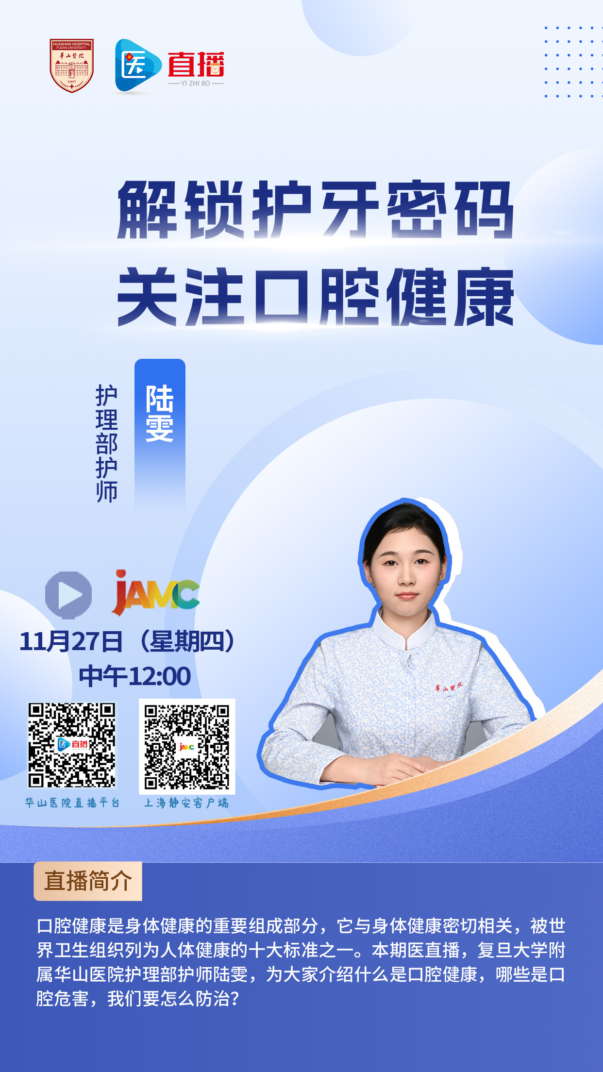 口腔健康是身体健康的重要组成部分,它与身体健康密切相关,被世界卫生组织列为人体健康的十大标准之一。本期医直播,复旦大学附属华山医院护理部护师陆雯,为大家介绍什么是口腔健康,哪些是口腔危害,我们要怎么防治?