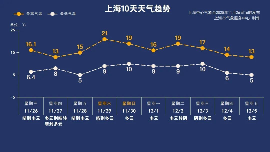 1.从徐家汇站常年平均来看,11月末候(11月26日-30日)日最高气温的最高值在17.3℃,达到20℃属于偏高但也不少见。过去25年中,徐家汇站有五分之一的年份在11月末候出现≥20℃的气温,其中2011年11月28日最高达23.3℃,民间也有“十月小阳春、无风暖融融”的说法。