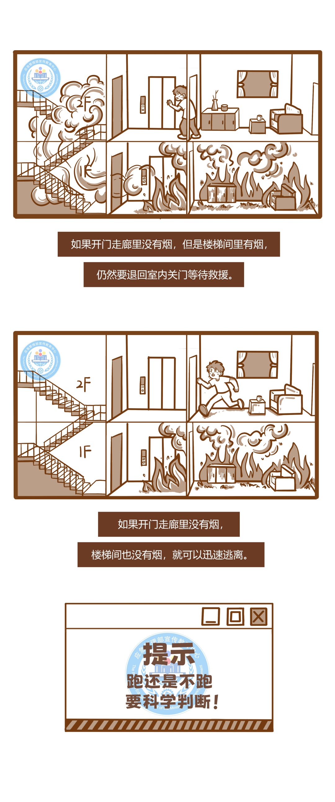 如果出口被浓烟或者是大火给堵住不能安全穿越时