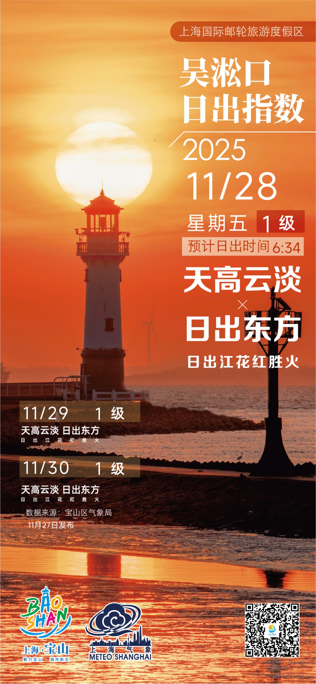 【吴淞口日出指数】11月28日1级 天高云淡×日出东方