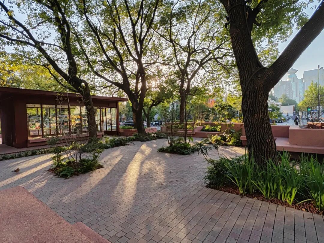 在改造过程中,街道充分发挥协调作用,与区绿化市容局、上海市城建档案馆共同协商调整功能布局,拆除城建档案馆红线范围的原围墙及原宋园路10号门卫室,打开虹桥路和宋园路沿线,为绿地开放创造条件。同时,区绿化市容局通过线上人民意见征集,确定了附属绿地及多功能驿站命名——附属绿地命名为“宋园10号”,驿站命名为“城市忆站”,充分体现了民主决策与人文关怀。