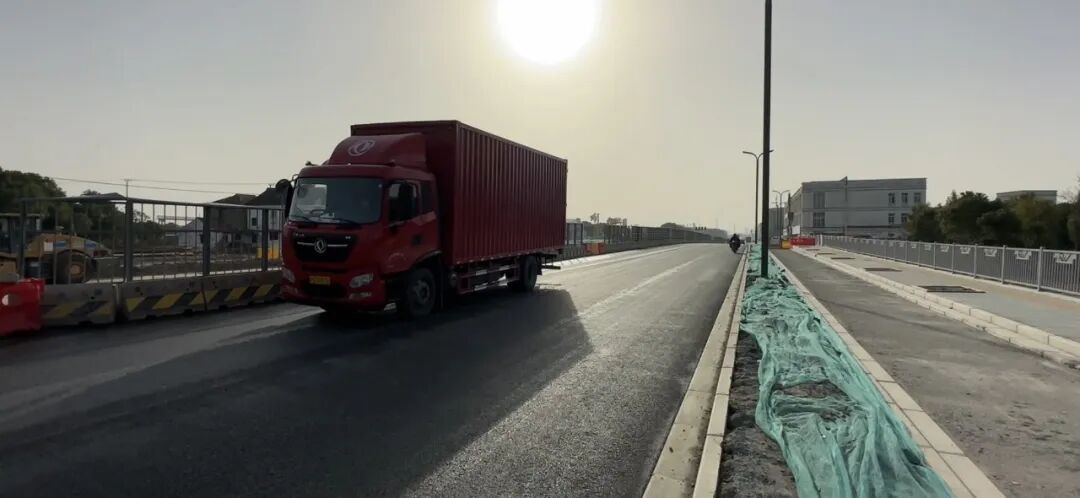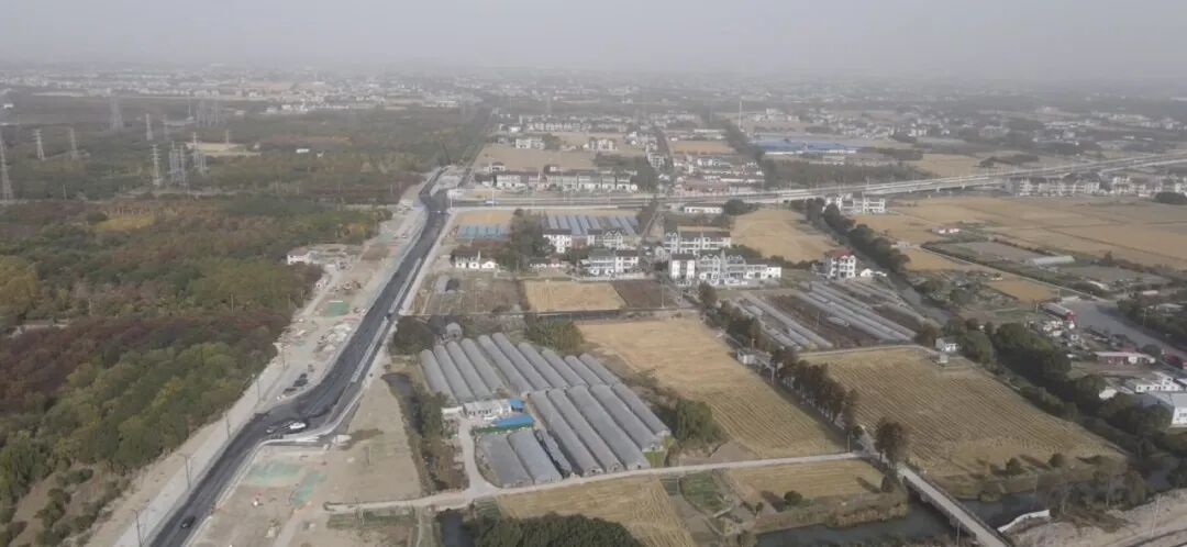 金山区交通建设工程管理中心建设科科员朱程介绍,该项目于2024年12月开工,目前总体施工形象进度已达72%,“接下来将重点推进龙航路以北两座桥梁的下部结构施工,以及东半幅路面的摊铺工作,力争在今年年底实现全线基本建成并通车。”