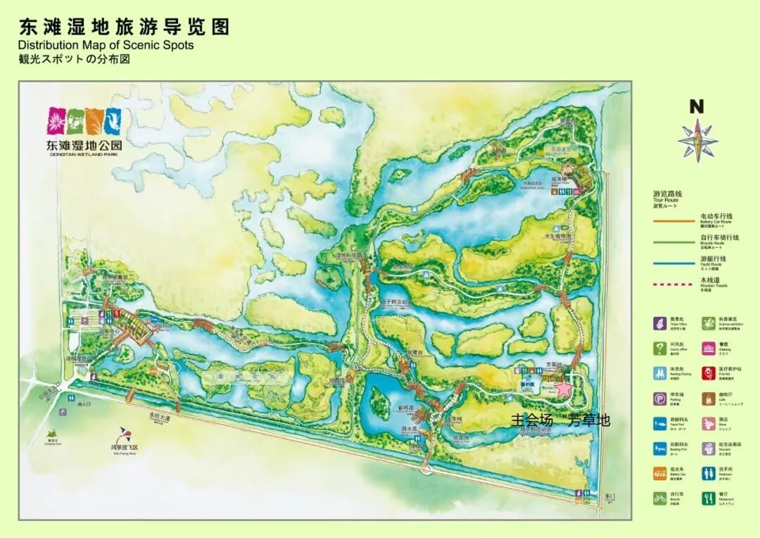 导航至东滩湿地公园,购票后进入公园,步行前往公园芳草地活动会场。
