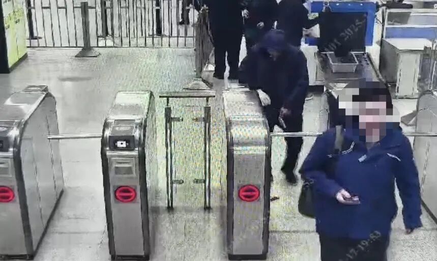公共视频画面显示,下午4点,老人通过安检后,手持交通卡在闸机前多次尝试,却始终未能成功进站。见他神情迷茫、步履踌躇,几位热心乘客主动上前询问,但老人言语含糊,无法说清目的地。此时,值班站长郜学海在巡视中发现异常,立即上前搀扶老人至休息区。