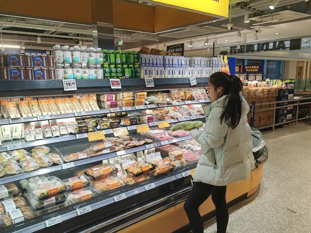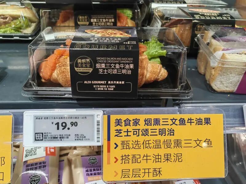 正在货架前搭配早餐食材的职场人陈女士告诉记者:“平时上班赶时间,又不想凑合早餐,前两天看到这款新上的烟熏三文鱼牛油果芝士可颂三明治就试了下,三文鱼分量很足,搭配牛油果泥一点都不腻,19.9元一份的价格也颇具性价比,今天又来拿两盒。”
