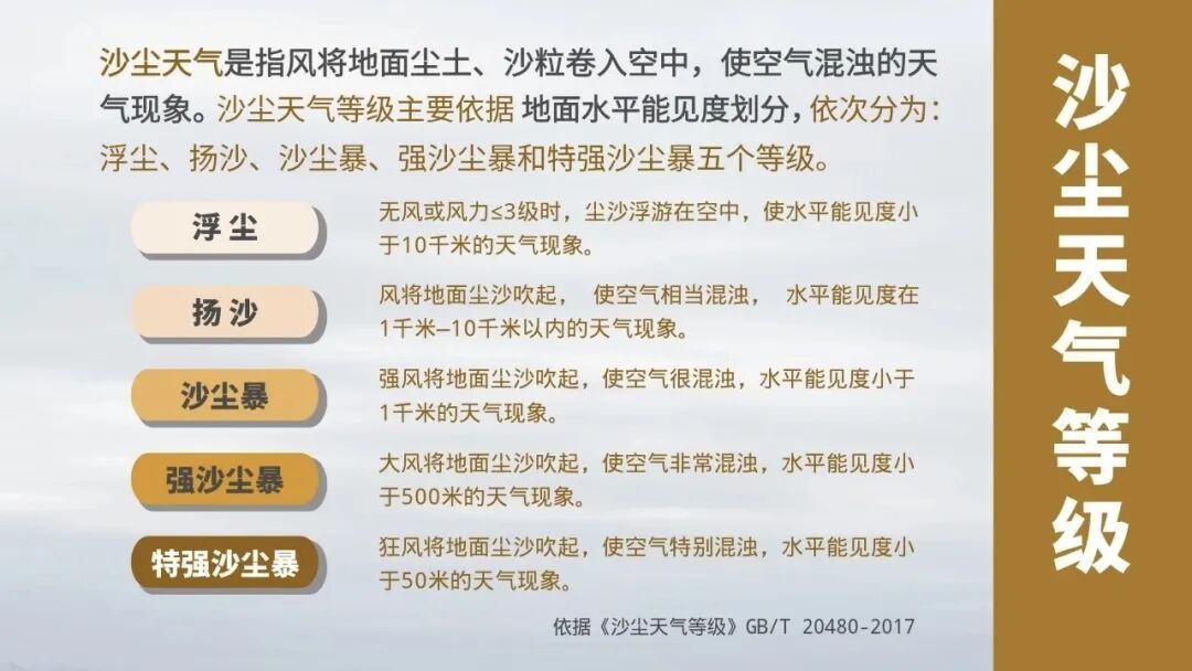与冷空气一同到来的,除了降温和大风,还有沙尘。本市受上游沙尘输送影响,白天空气中的颗粒物浓度增加,水平能见度在5~11公里,有浮尘,提醒敏感人群注意做好防护。